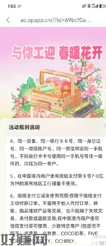 娄底工行,与你工迎春暖花开活动,限制手机号要娄底归属地