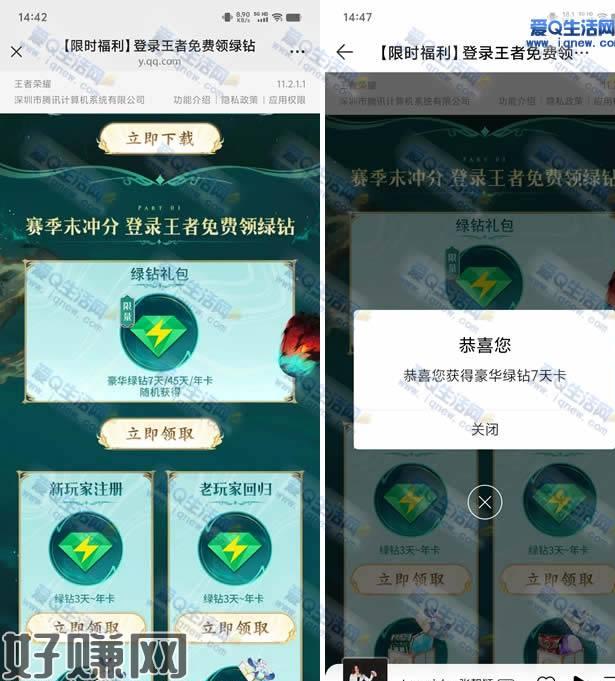 登录王者荣耀(可以腾讯先锋)-打开活动页面-下拉领取7-365天会员