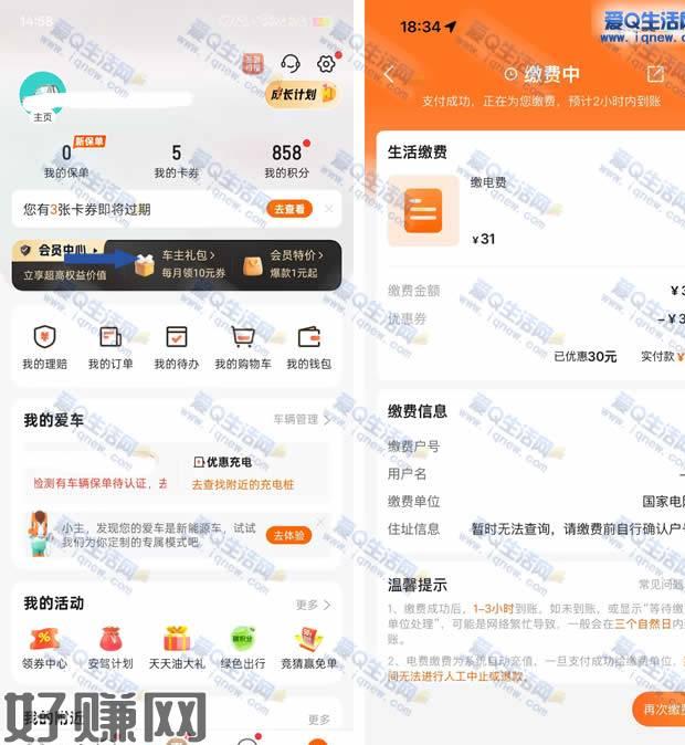 1.平安好车主APP-我的-会员中心-车主礼包-领每月会员礼-可以领网上国网电费抵扣券